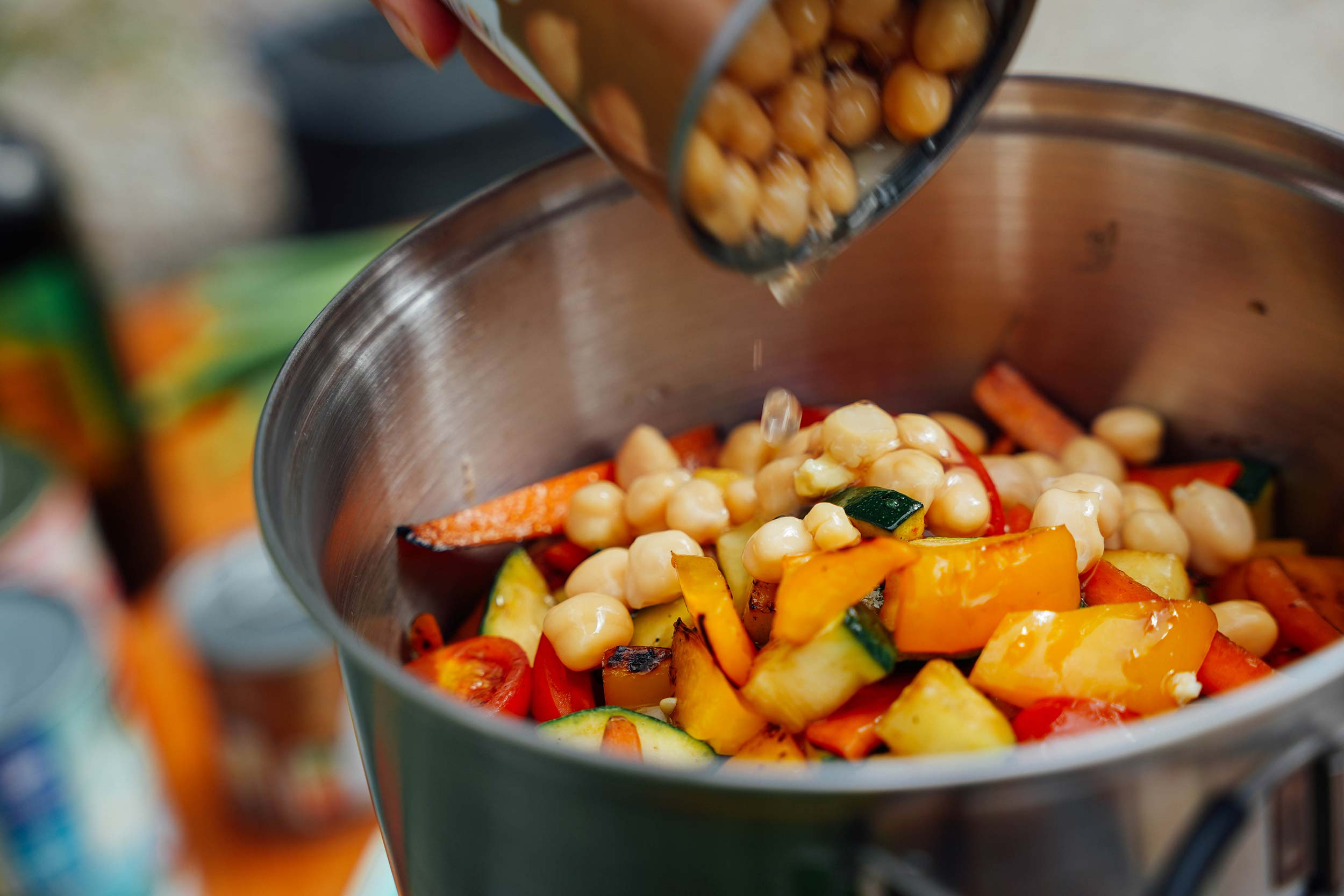 Alles bei mittlerer Hitze ca. 15–20 Minuten köcheln lassen, bis das Gemüse gar ist.