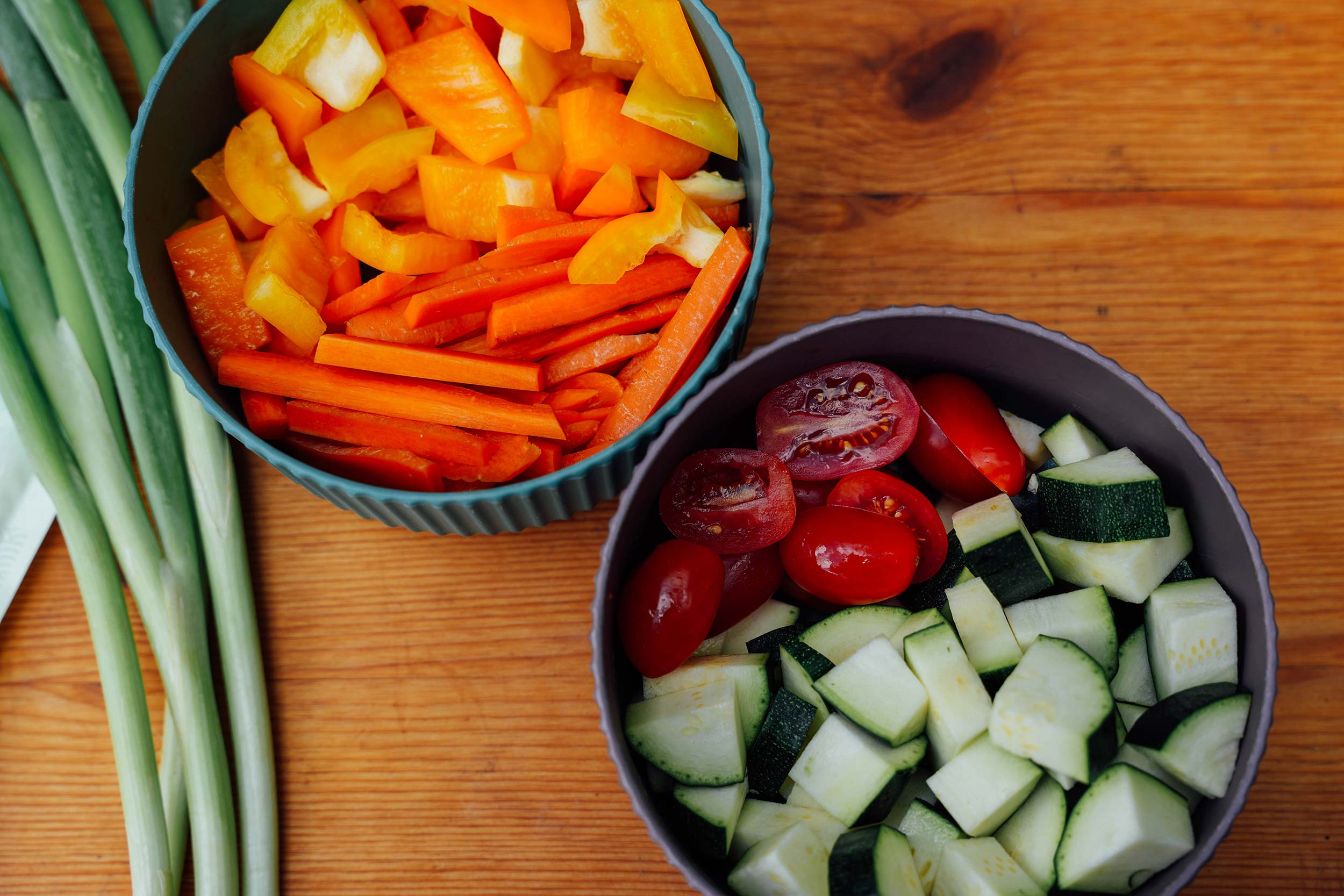 - Gemüse putzen und in mundgerechte Stücke schneiden