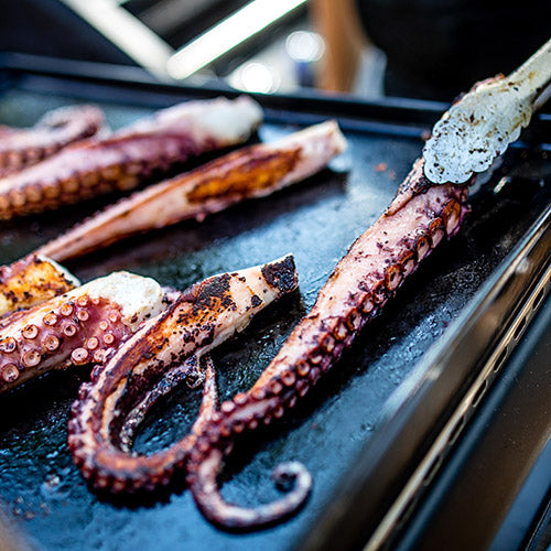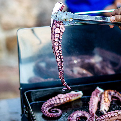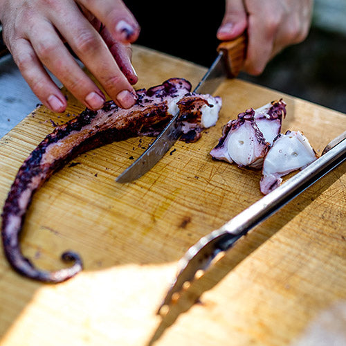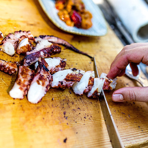 2. Zum Schluss den Tintenfisch in das kochende Wasser geben und garen, bis er weich ist. Für den Vorgang sollten Sie etwa 40 bis 50 Minuten einplanen. Wenn Sie nach dieser Zeit ein Holzstäbchen in den dicksten Teil des Tentakels stechen, sollten Sie zu Beginn ein sanftes Knirschen spüren, danach sollte der Stock ganz leicht durchgehen.