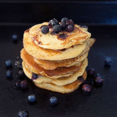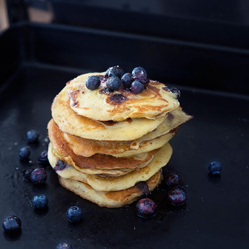 Pancakes von der Plancha mit Heidelbeeren und Mandelbutter