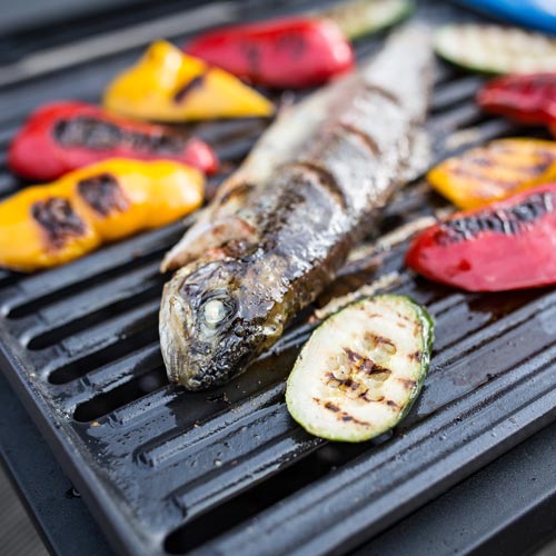 - Score three diagonal slits on both sides of the fish, no more than 0.5 cm deep. Then season the trout with salt and pepper, drizzle with lemon, and lightly brush with oil. Preheat the grill to medium heat and grill the fish for 10-15 minutes, turning occasionally. The fish should flake easily from the bones but not be dry.