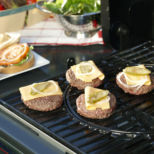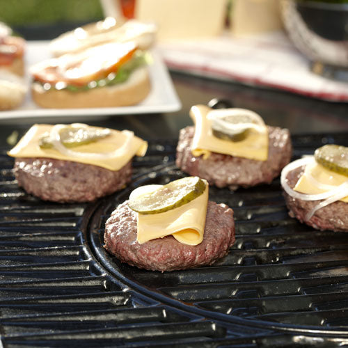 - Form the ground beef into 4 equal-sized patties and season lightly with salt. Cook for 2 minutes on one side. Then flip and place a slice of Cheddar cheese on top. Grill for another 2 minutes if you prefer the burgers only lightly cooked ("rare").