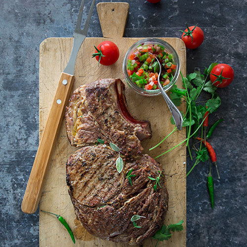 - Heat the grill and sear the meat for a few minutes on each side. Reduce the heat and continue cooking until the desired doneness (for rare meat, allow 7 minutes on each side). Let the beef steak rest for a few minutes before serving. Serve with the Creole sauce.