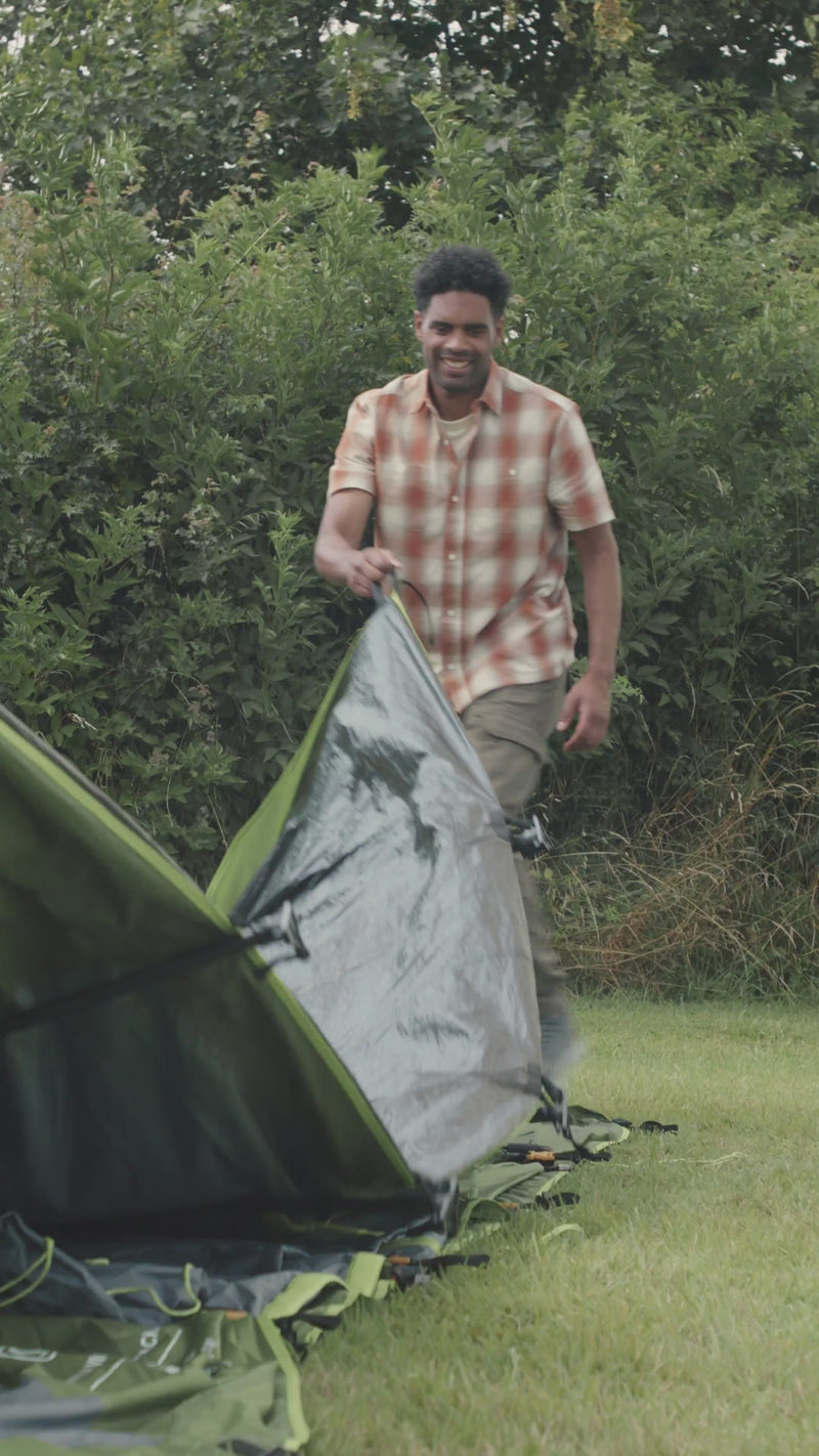Experience stress-free camping with the FastPitch Victoria 4 BlackOut , the innovative 4-person family tent from the Victoria Falls Collection . Thanks to the FastPitch™ setup system with 4 sturdy telescopic steel poles, it can be pitched in minutes – without complicated instructions and even by yourself.